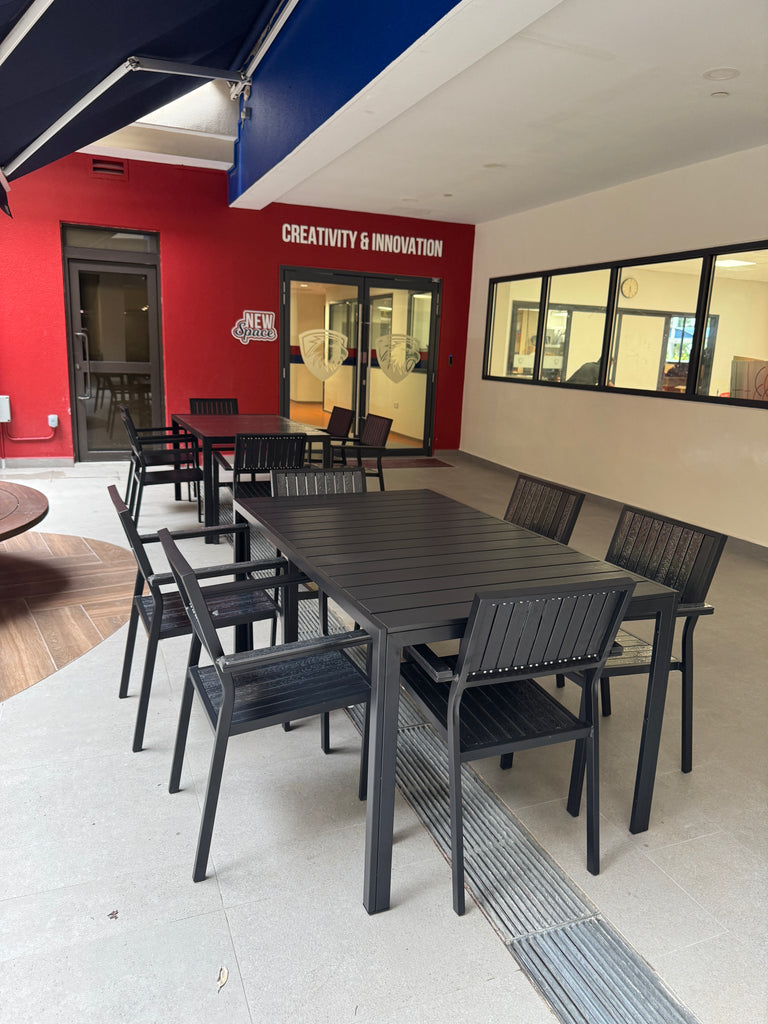 The project involved the delivery of 300+ units of outdoor tables, chairs, and umbrellas, tailored to suit different functional zones within each campus.