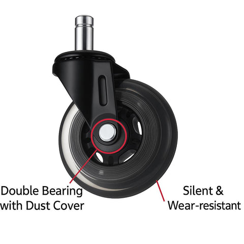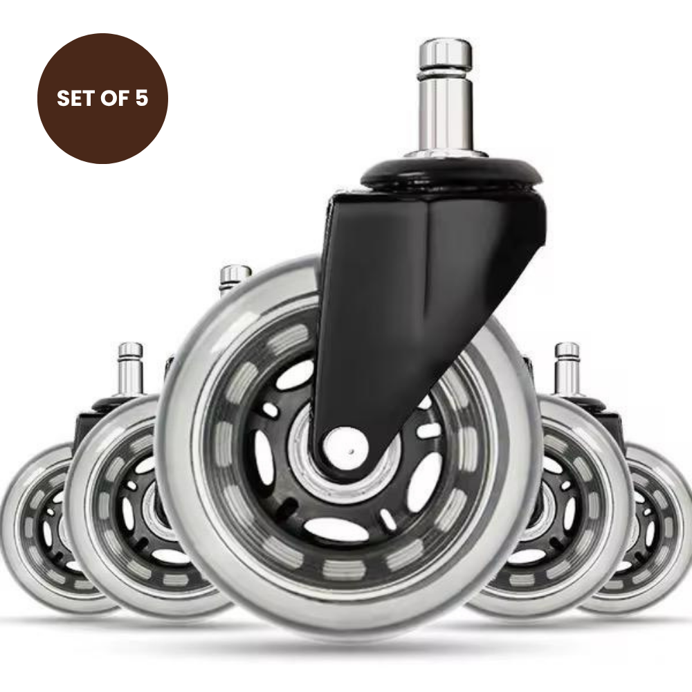 WHEELS THAT WON’T FAIL – Office chair casters are made of bearings & polyurethane material for being very strong, non-breakable and durable. It can bear loads of up to 770lbs. The best part about the design is that it prevents oil & grease leakage